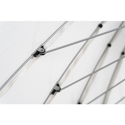 De 24 ribbeina til Vaticano holder lerretet fint og stramt, selv om solskjermen er tippet, på denne måten kan solnedgangen blokkeres uten å bekymre seg for vind.