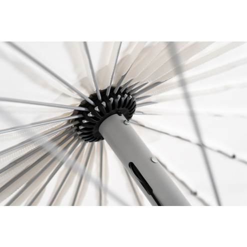 Vaticano ser stilig og munter ut, systemet fungerer hendig og jevnt. De 24 fleksible ribbene sørger for at det falmebestandige stoff alltid er spent. Bare vipp parasollen til 45° for å nyte skyggen, selv når den henger lavt om høsten, akkurat slik du vil ha den. Denne parasollen er oppkalt etter kuppelen i Vatikanstaten og tar heller ikke mye plass, samtidig som den etterlater et formidabelt inntrykk hos gjestene dine.